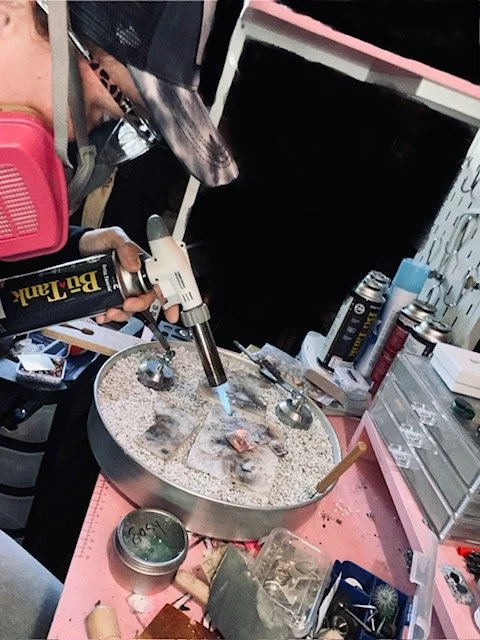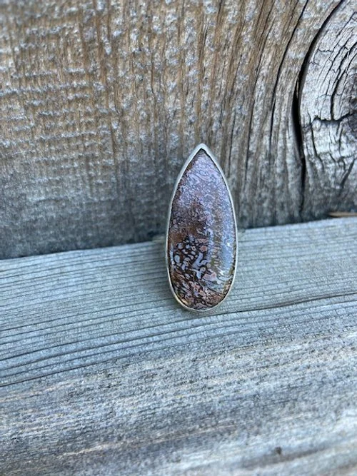 Melissa Gregg is a registered nurse who started making sterling silver jewelry last year. She fell in love with the art after taking a class. A fellow registered nurse at her workplace had suggested it, as she had begun making jewelry herself years ago. She creates beautiful pieces using natural stones and supplies sourced from various countries, including India, Australia, and France. All her creations are inspired by nature, whether it be the ocean, lakes, trees, or mountains. She enjoys making custom pieces for people and is open to trying new designs if she hasn't done them before.